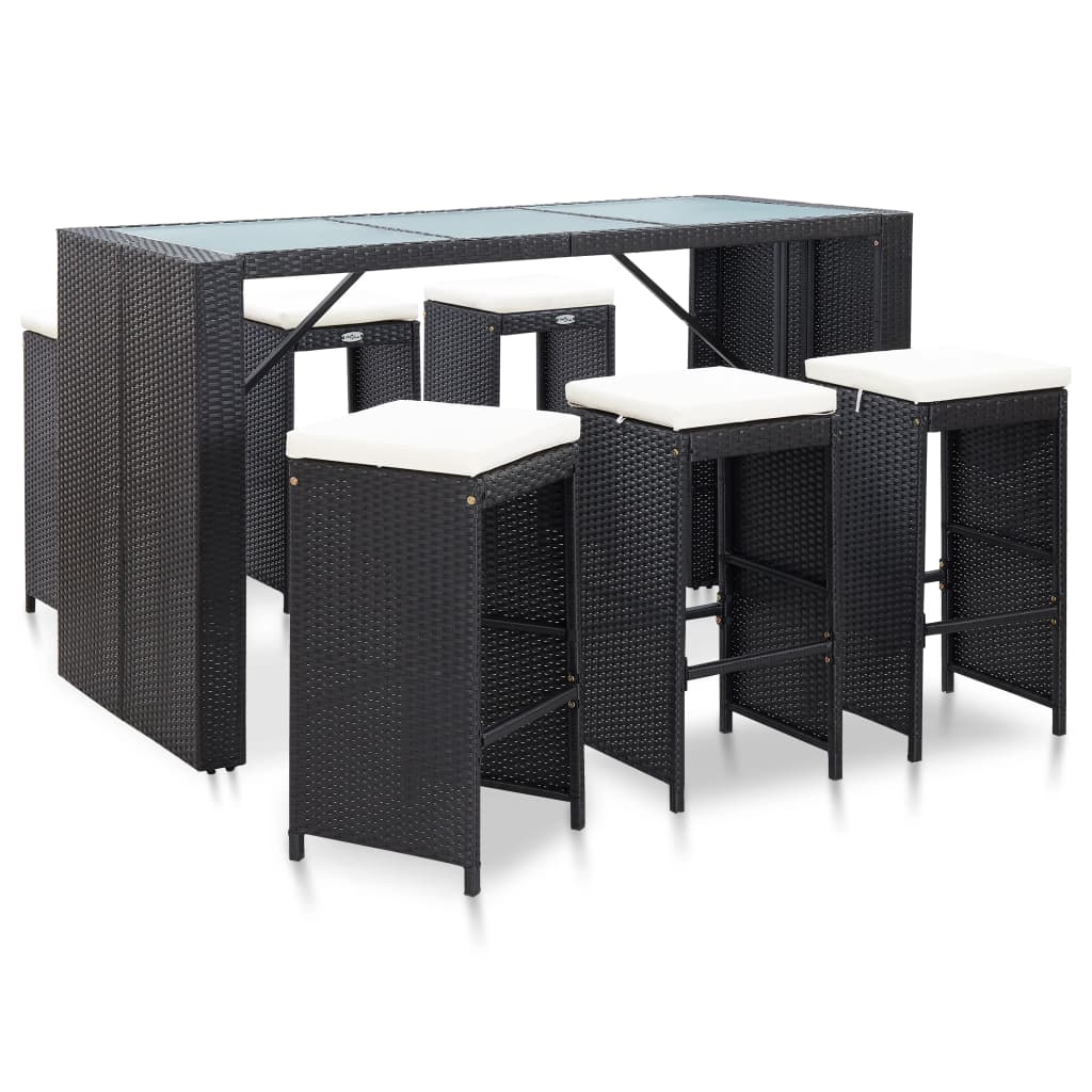 7 Piece Garden Bar Set with Cushions Poly Rattan Brown